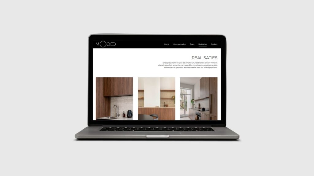 Mood Projects ontwerpt en realiseert keukens voor projectontwikkelaars en architecten. Aangezien er nog geen bestaande website was, lag de uitdaging in het creëren van een digitale basis die het bedrijf correct positioneert binnen de B2B-markt en vertrouwen uitstraalt bij professionele partners.